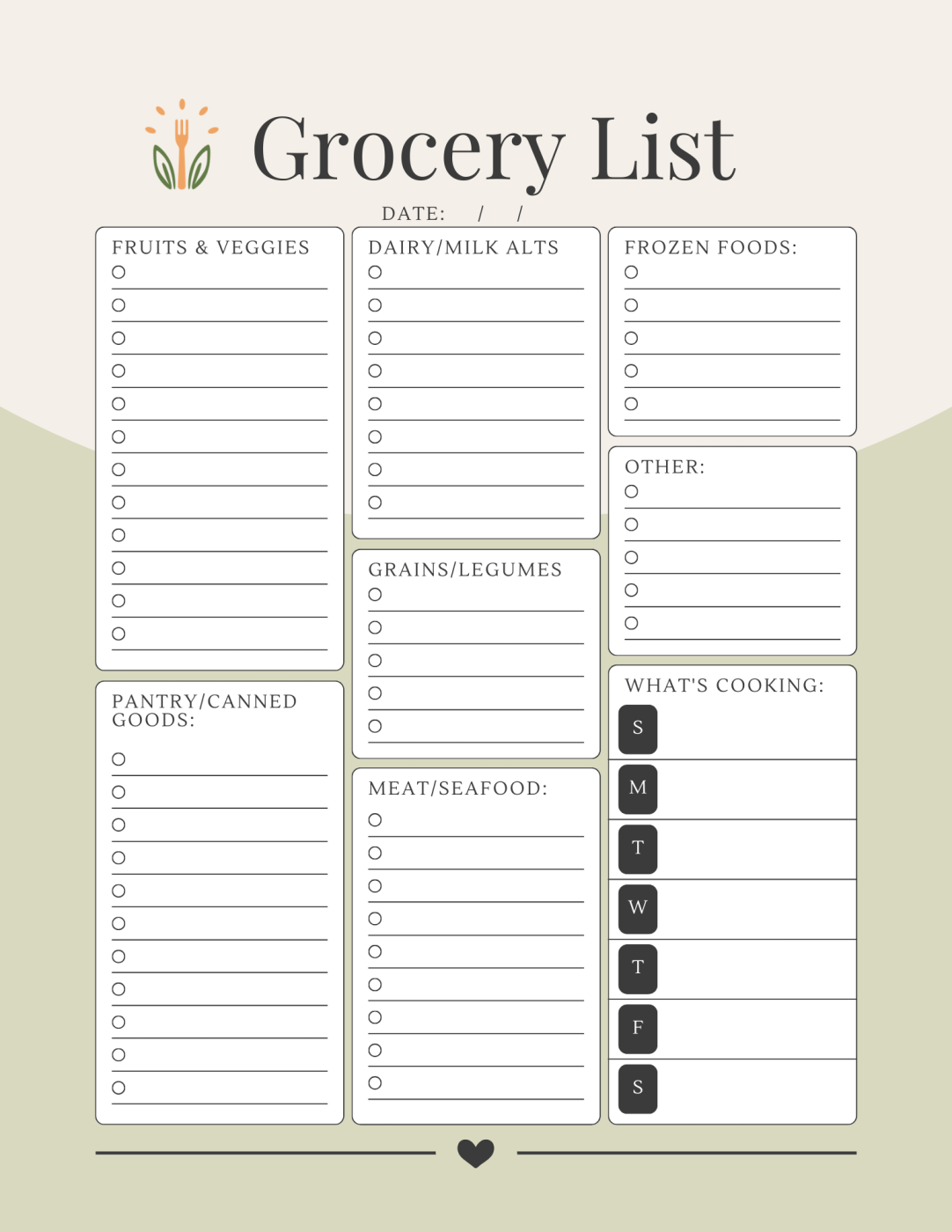 Grocery Shopping List/ Meal Planning PDF